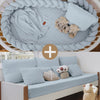 Enxoval Berço e Cama Tricô 100% Algodão – Combo 11 Peças Cozy Cottage Azul Delicate
