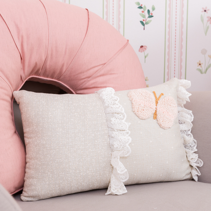 Almofada de Amamentação Rosê 100% Algodão Linho - Coleção Classic Poesia