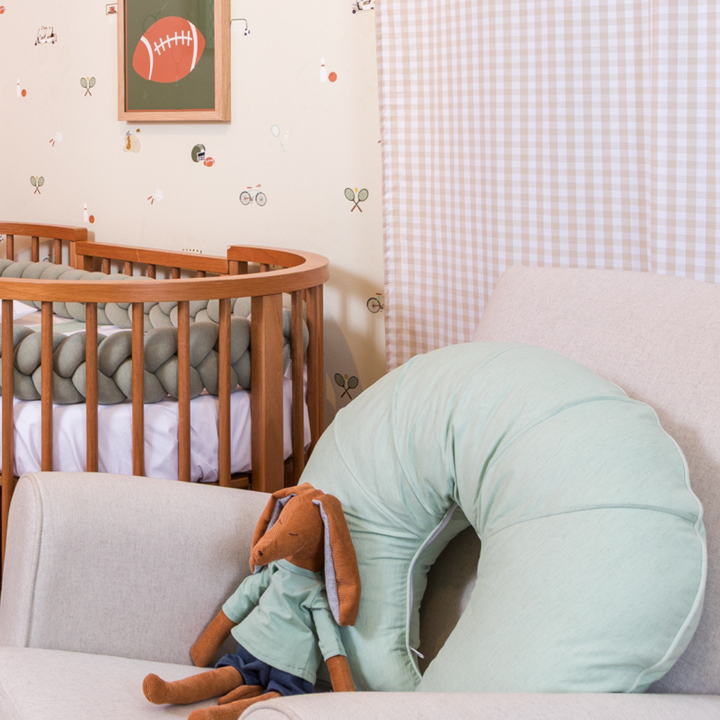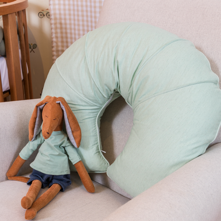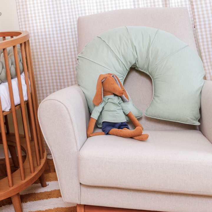 A Almofada de Amamentação Linho Poesia Classic Verde traduz o encontro entre aconchego e elegância natural.