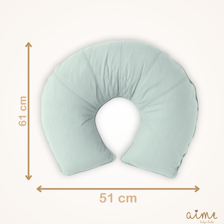 Com formato anatômico em “U” e acabamento nervurado delicado, ela envolve mãe e bebê com conforto e charme em cada momento da amamentação.