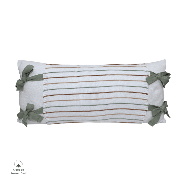 Almofada Decorativa Retangular Meia Malha Branco com Avental Taylor Branco com Verde Oliva ✨