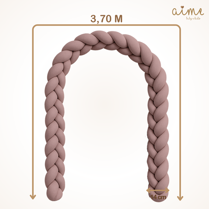 A trança envolve o berço de forma segura e delicada, evitando o contato direto com as grades e adicionando um toque de ternura à decoração.