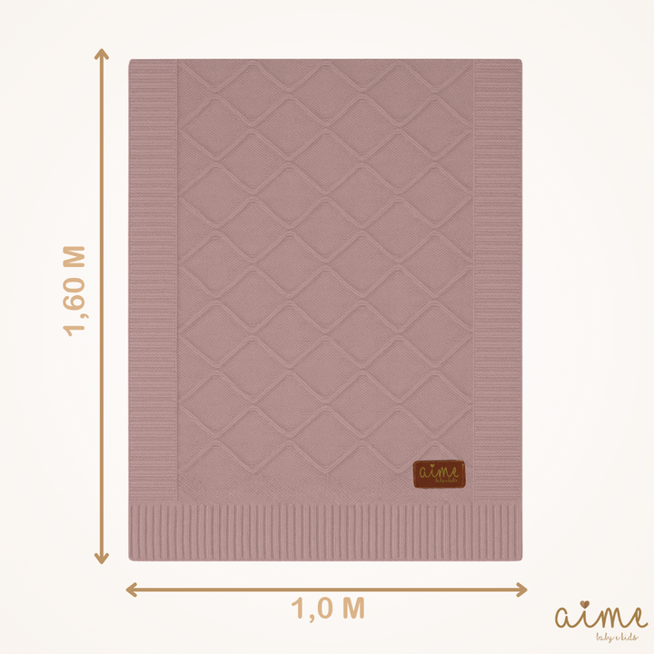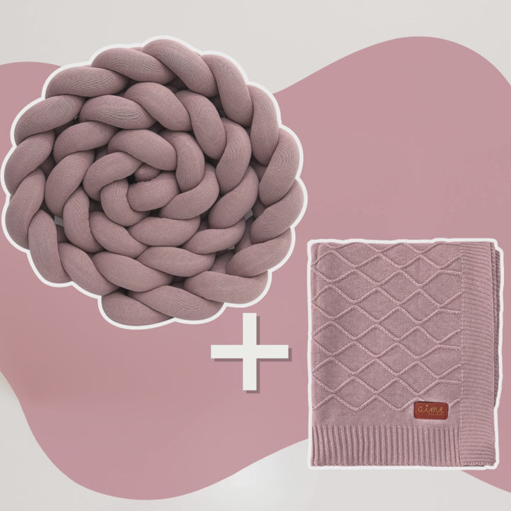 Cobertor de Bebê e Trança de Berço Tricô Rosa Velho 100% Algodão – Combo 2 Peças