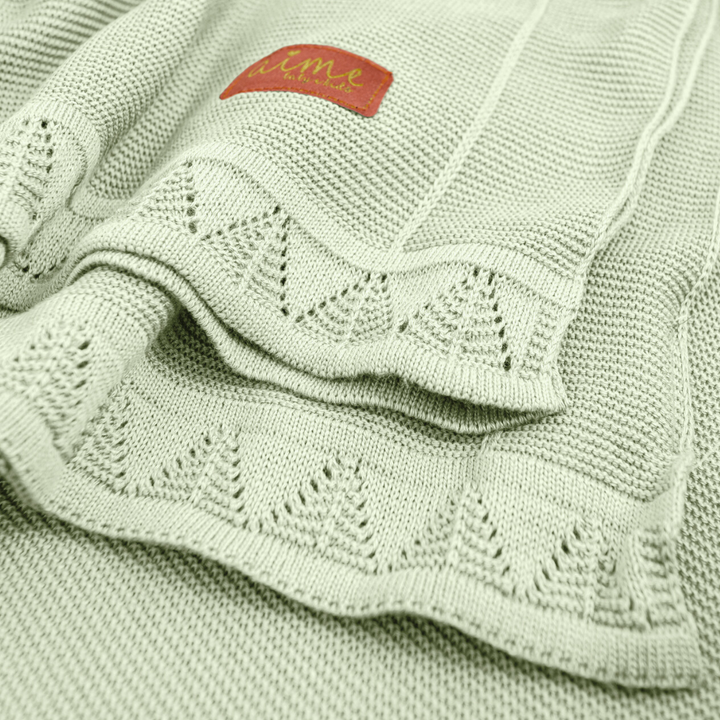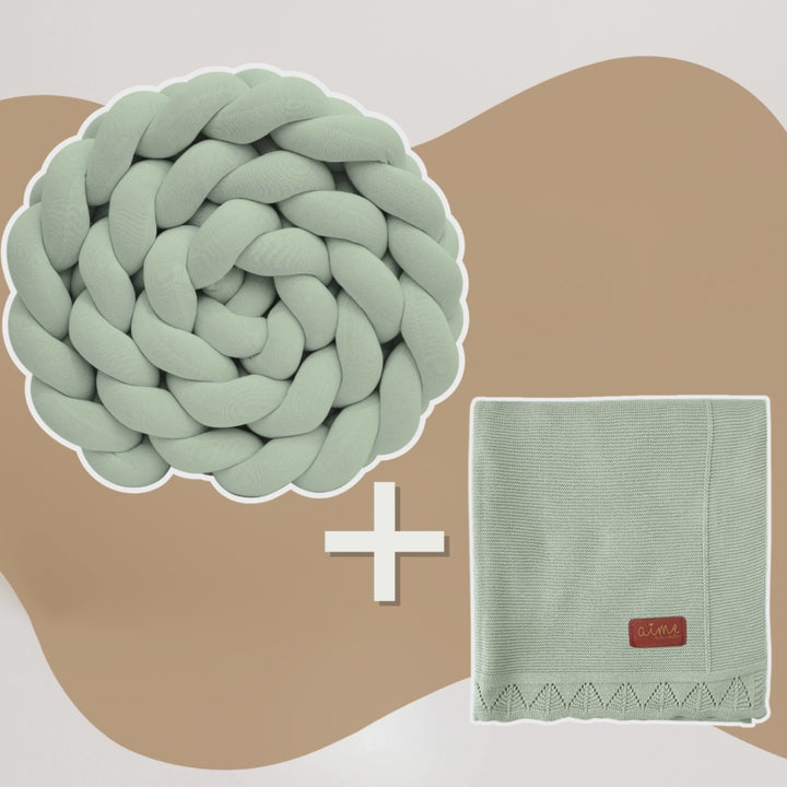 Cobertor de Bebê e Trança de Berço Tricô Verde Greens 100% Algodão – Combo 2 Peças Forest