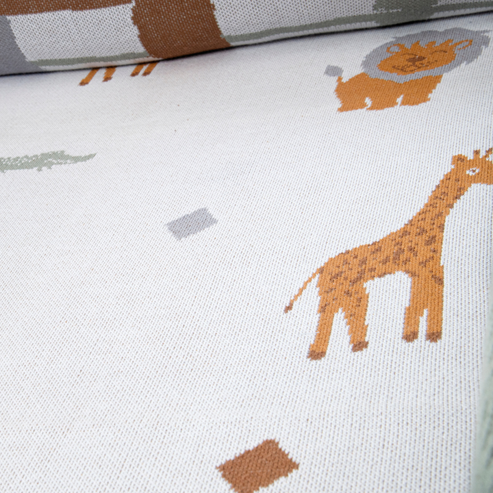 A estampa safari do cobre leito para berço traz um toque lúdico e encantador ao quarto do seu bebê. Com desenhos de girafa, elefante e leão, o cobre leito transforma o berço em um espaço divertido e acolhedor. O fundo branco da estampa adiciona um toque de elegância, tornando o cobre leito uma peça versátil que combina com diferentes estilos de decoração.