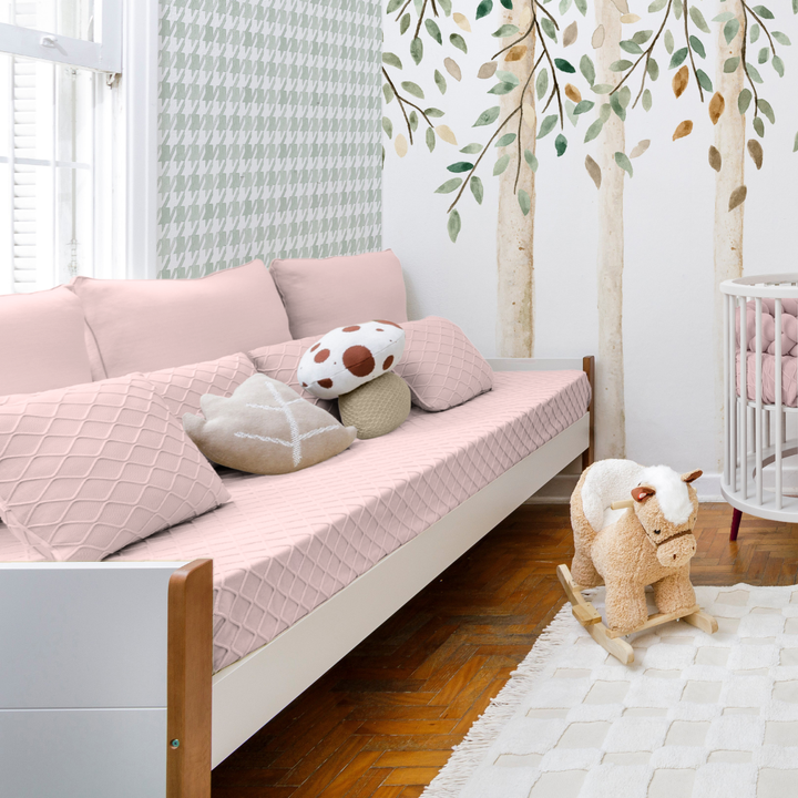 Enxoval Berço e Cama Tricô 100% Algodão – Combo 11 Peças Cozy Cottage Rosa Ballerina