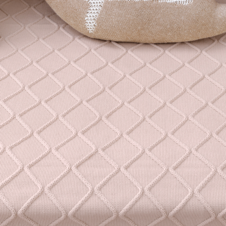 Feito em tricô 100% algodão, o enxoval proporciona um toque suave, respirável e antialérgico — ideal para a pele sensível do bebê. Cada detalhe foi pensado para criar harmonia visual e bem-estar em todos os momentos, desde o sono tranquilo até os momentos de carinho em família.