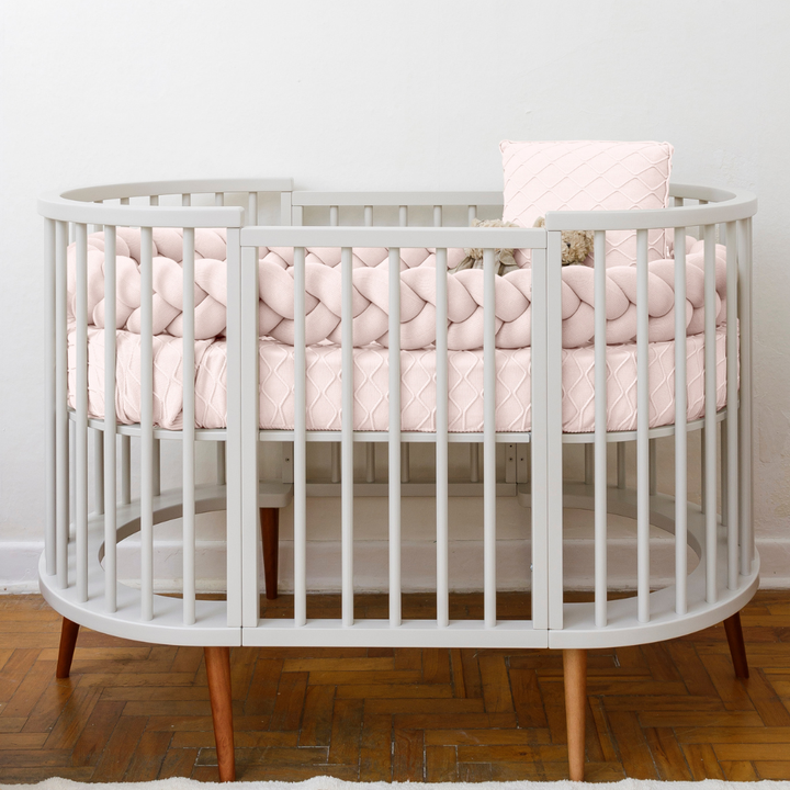 ✨ Proteção, conforto e estilo em cada detalhe. A trança cria uma barreira suave e segura, enquanto o cobre leito e a almofada decorativa completam o berço com elegância.