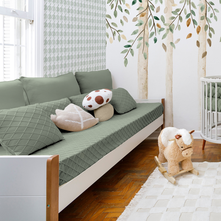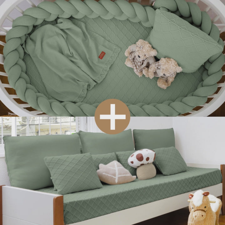 Enxoval Berço e Cama Tricô 100% Algodão – Combo 11 Peças Cozy Cottage Verde Oliva