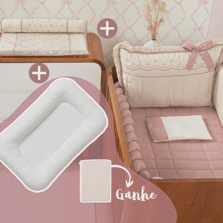 Na compra do Combo Linho Saint Tropez completo, você ganha uma capa removível marfim para o ninho redutor feita com o mesmo cuidado artesanal e toque suave que tornam cada peça da nossa marca tão especial.