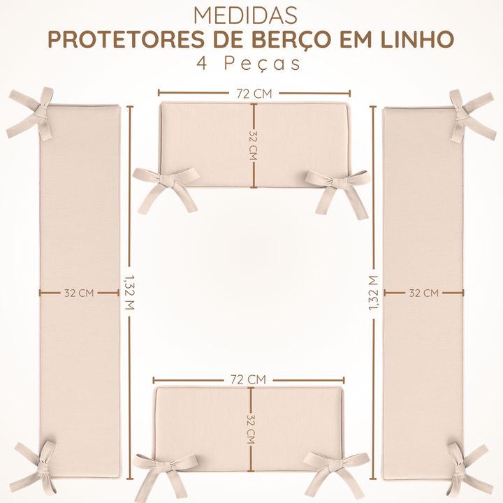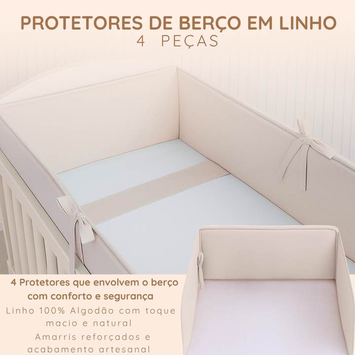 Kit Protetores de Berço em Linho 100% Algodão (4 peças)