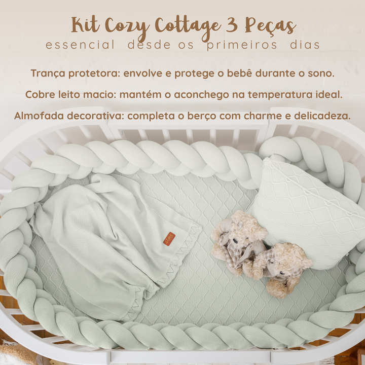 01 Kit de Berço Tricot 3 Peças Cozy Cottage Verde Greens