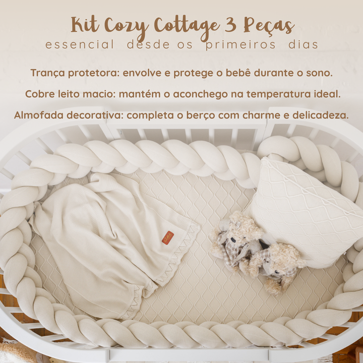 01 Kit de Berço Tricot 3 Peças Cozy Cottage Almond Milk