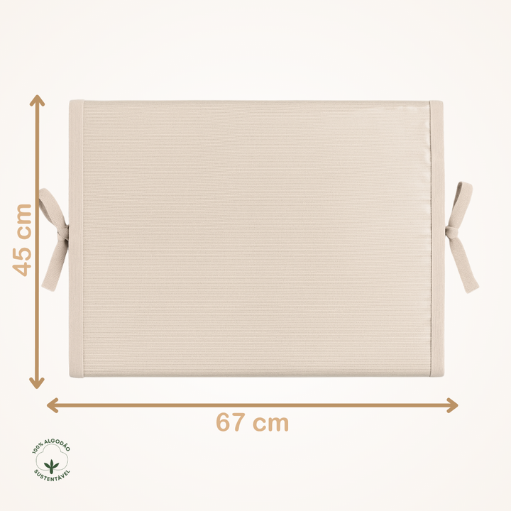 Design ergonômico e tecido antialérgico 100% algodão sustentável.