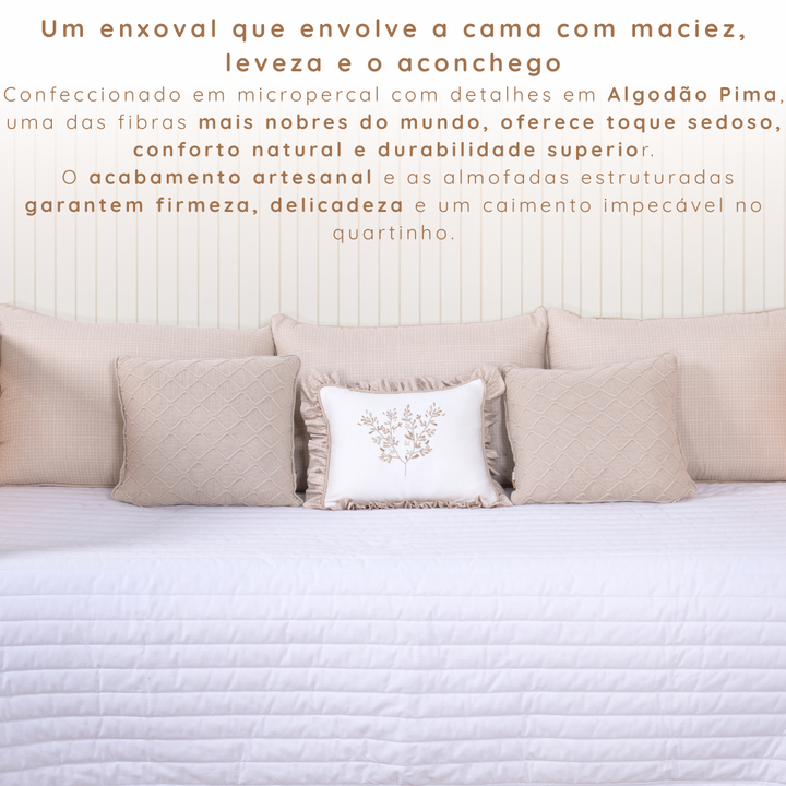 Kit Cama Auxiliar Algodão Pima – Enxoval 05 Peças Bordado e Acolhedor Bege