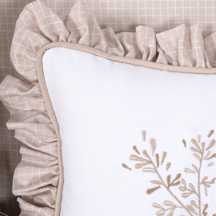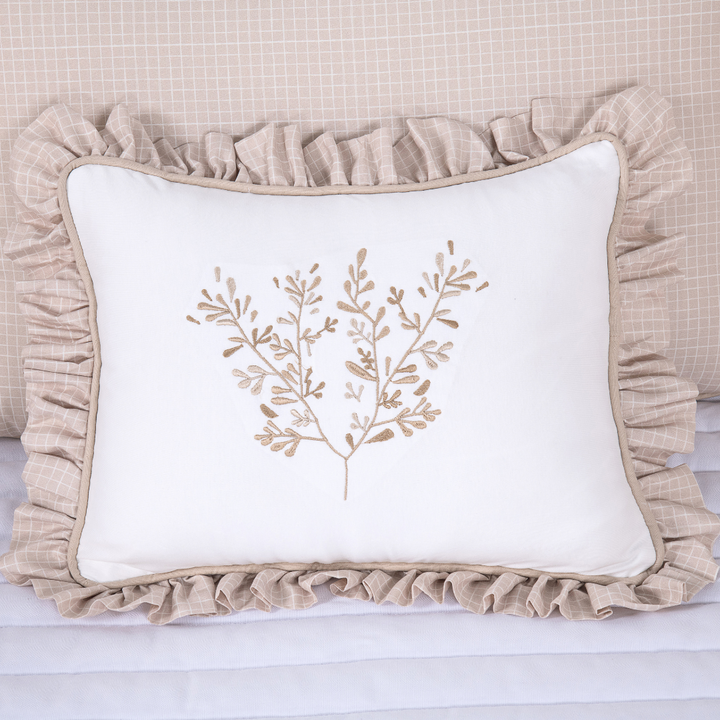 🔹 1 Almofada Bordada com Babado: 43 cm × 33 cm