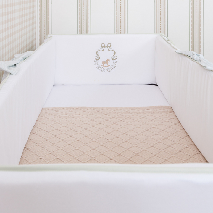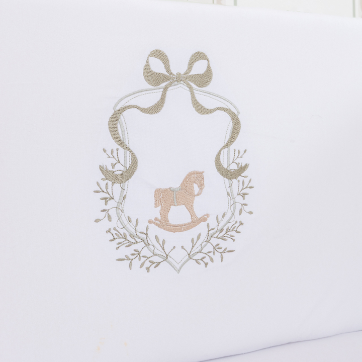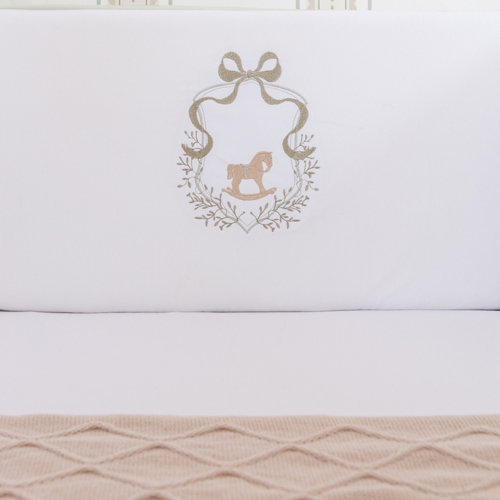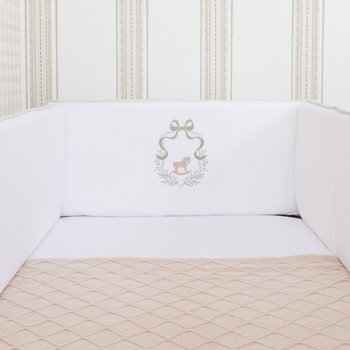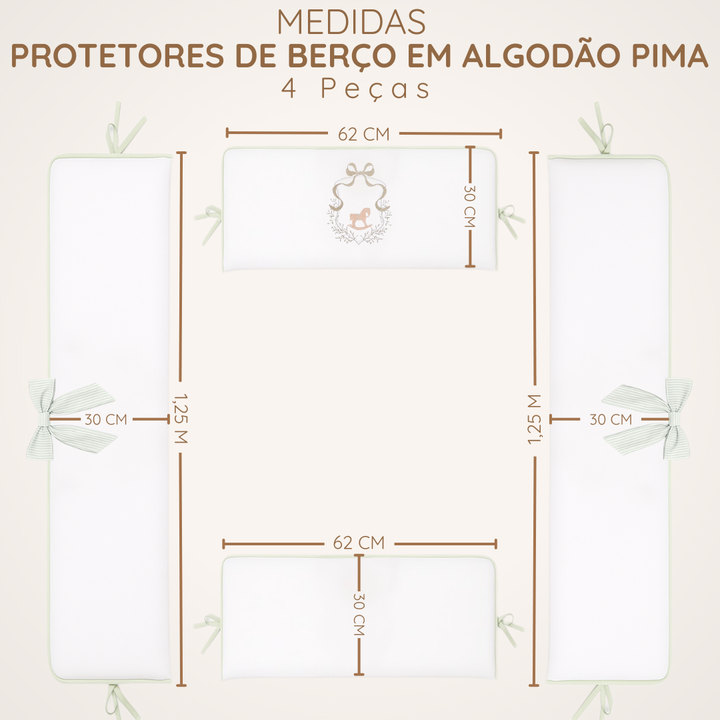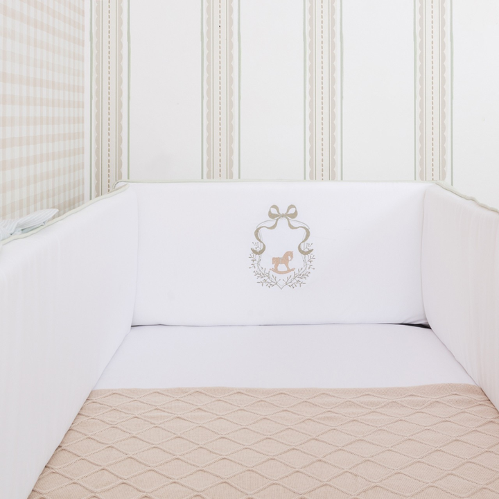 Kit de Berço em Algodão Pima – Protetores 4 Peças Bordado Verde