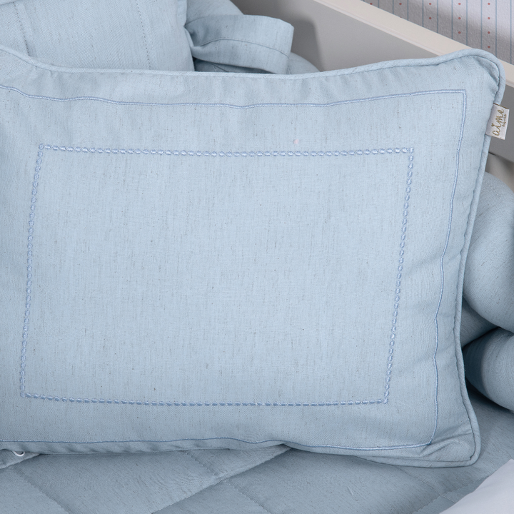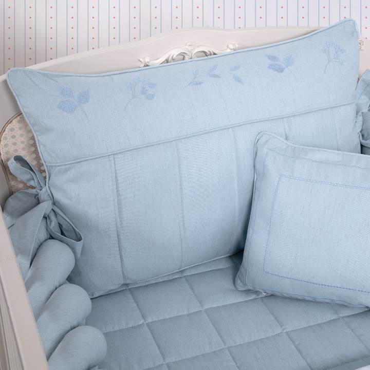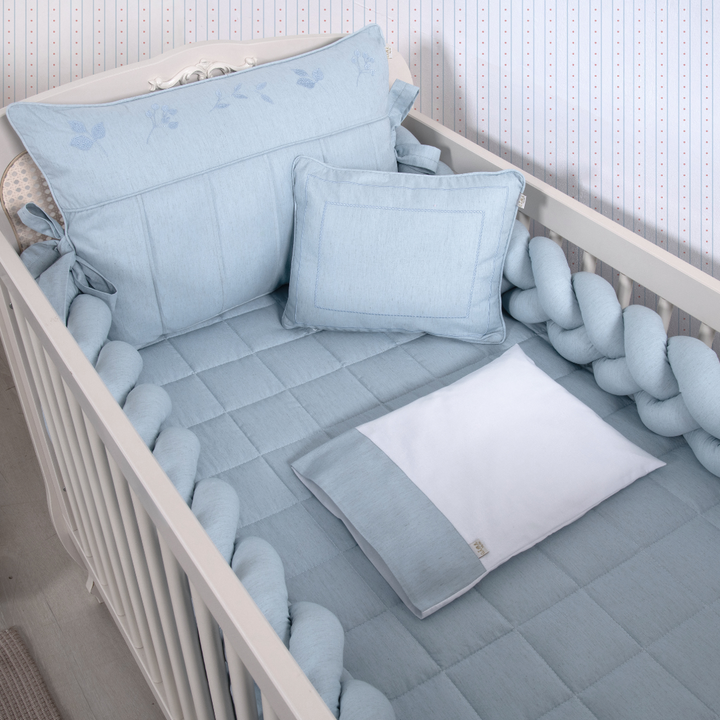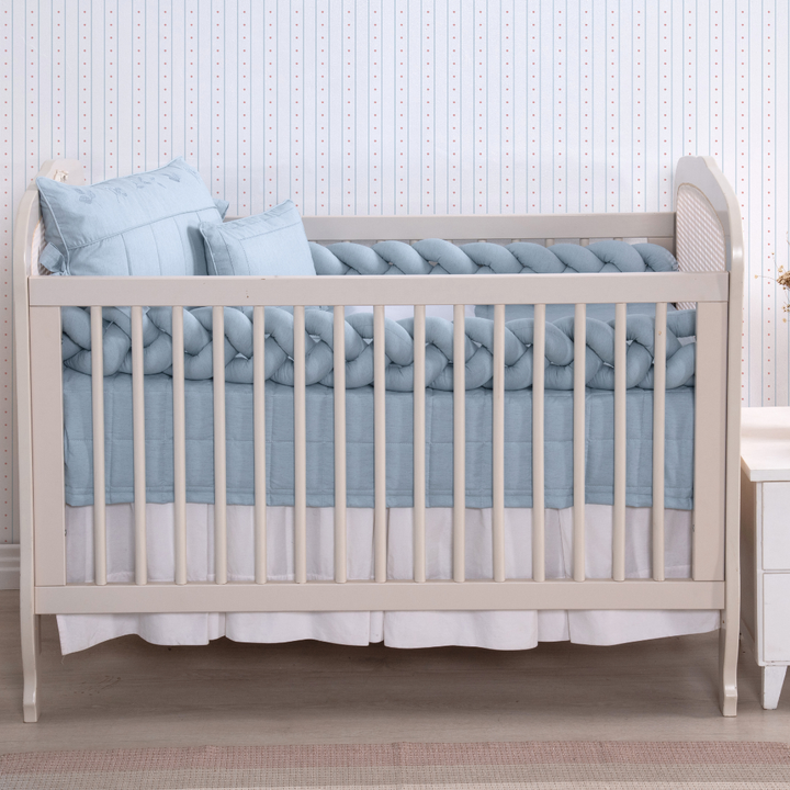 Kit de Berço Trança 07 peças Azul Linho Algodão Poesia Padrão Americano