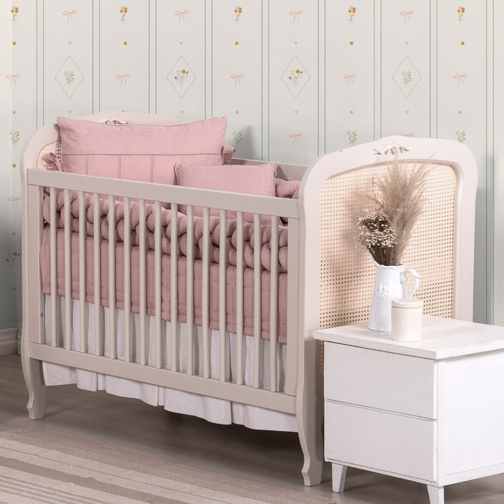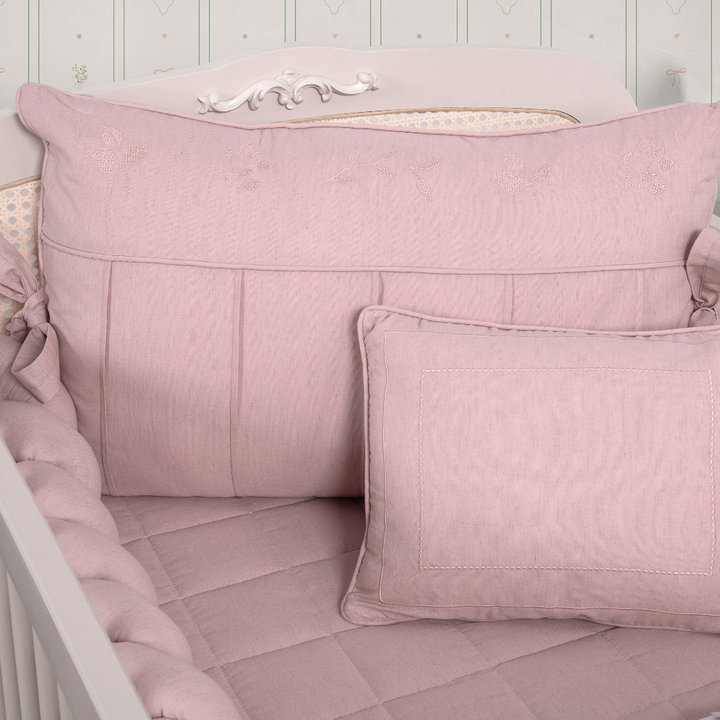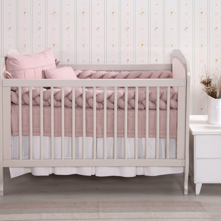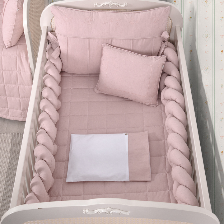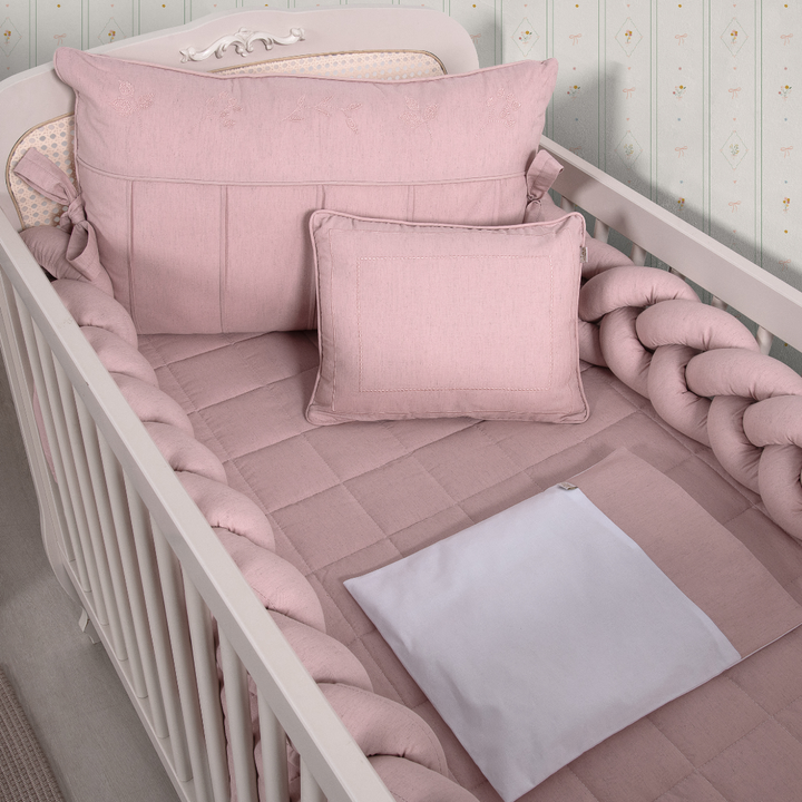Kit de Berço Trança 07 peças Rosê Linho Algodão Poesia Padrão Americano