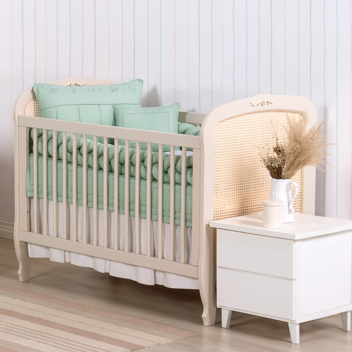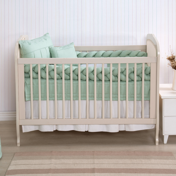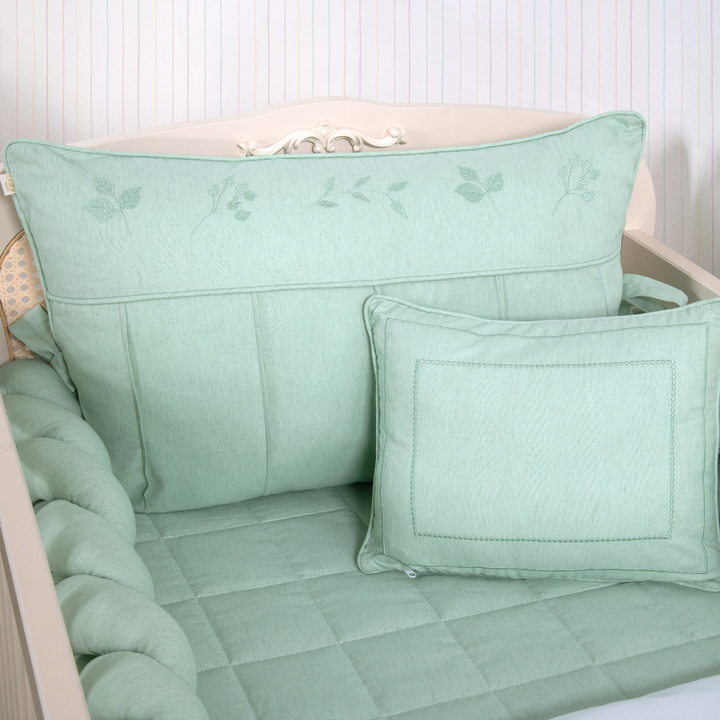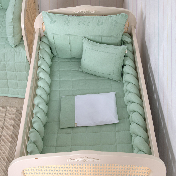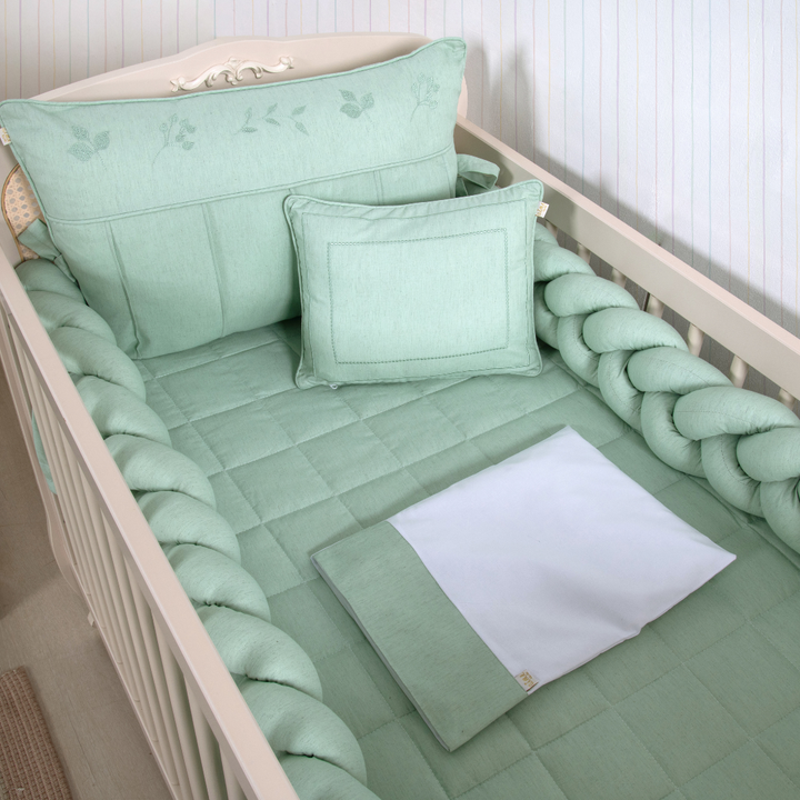 Kit de Berço Trança 07 peças Verde Linho Algodão Poesia Padrão Americano