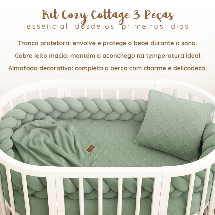 Kit de Berço Tricot 03 Peças – Cozy Cottage Verde Oliva