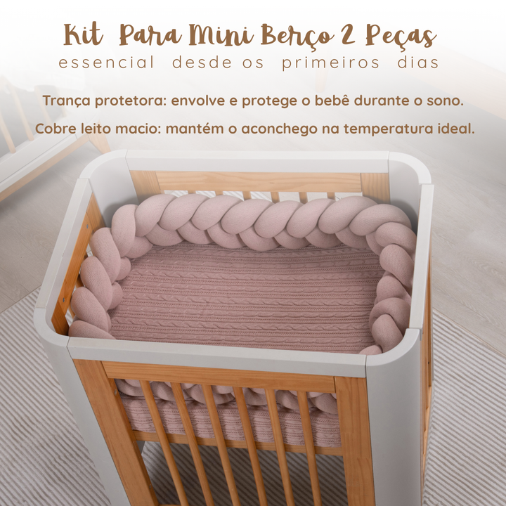 O Kit Mini Berço da Aime foi cuidadosamente pensado para oferecer segurança, conforto e um toque de delicadeza ao cantinho do seu bebê. Composto por uma manta cobre leito macia e uma trança protetora acolchoada, este conjunto é ideal para proporcionar noites mais seguras e aconchegantes.