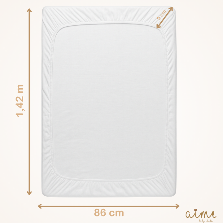 O lençol inferior, em percal branco liso, garante toque macio e respirável, proporcionando noites tranquilas e seguras para o bebê.