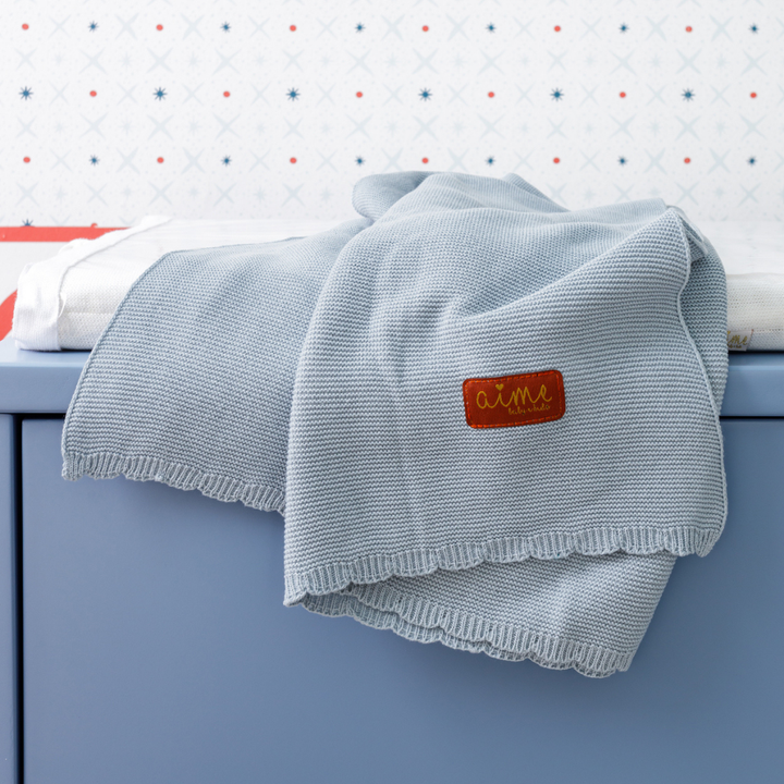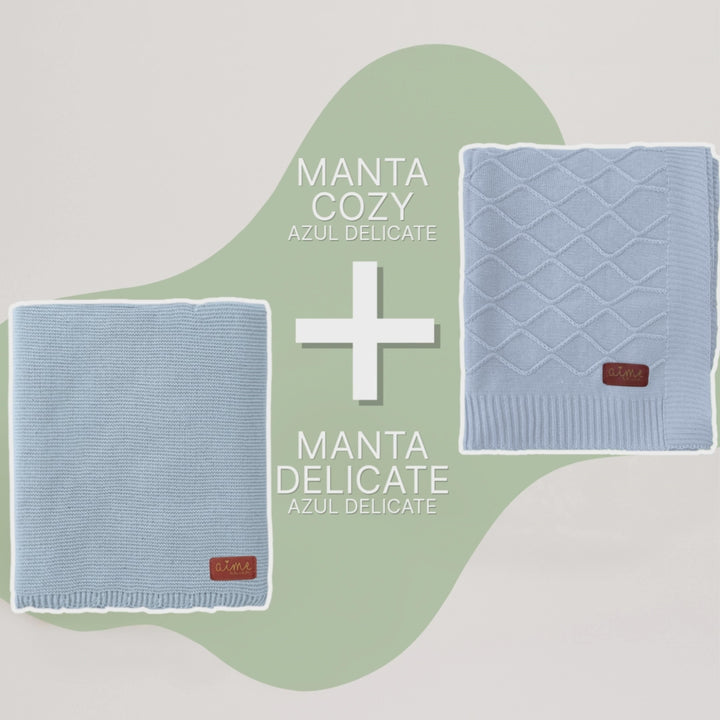Manta para Bebê Azul Tricô 100% Algodão – Kit com 2 Unidades - Combo Cozy Cottage e Delicate