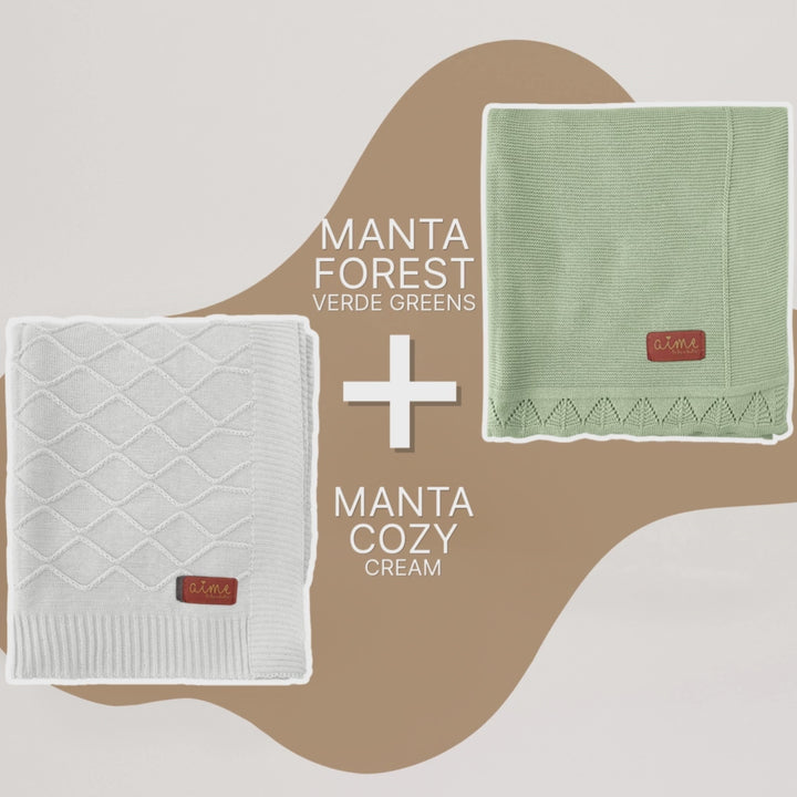 Manta para Bebê Tricô 100% Algodão – Kit com 2 Unidades - Combo Forest e Cozy Cottage