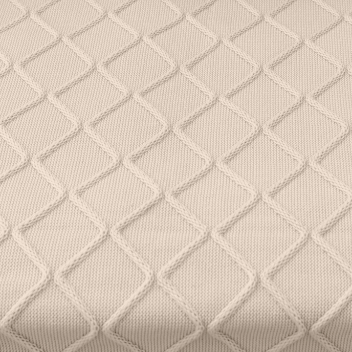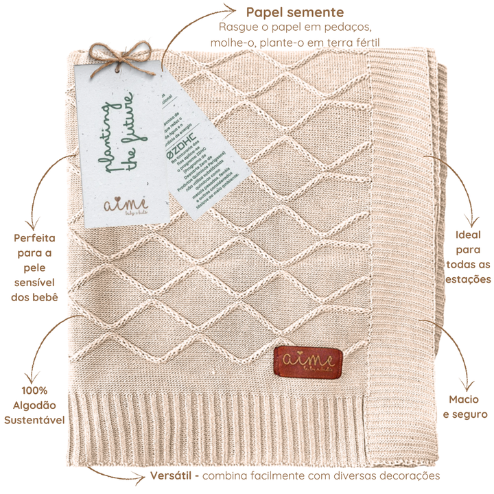 O tricô de algodão sustentável proporciona uma textura respirável, macia e aconchegante. A manta mantém o bebê protegido e confortável em todas as estações. Embora leve, oferece o calor necessário para noites mais frias, sem sobreaquecer.