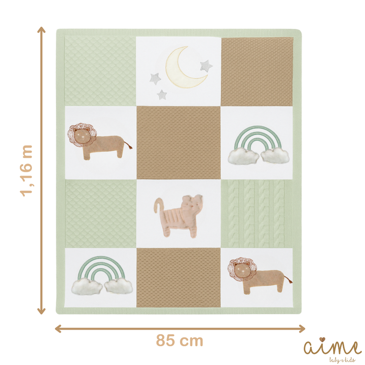 A Manta Sensorial Tricô Aime foi especialmente projetada para estimular o desenvolvimento sensorial e motor do seu bebê, proporcionando uma experiência lúdica e aconchegante. Feita em 100% algodão antialérgico , essa manta oferece um toque suave e seguro para a pele sensível dos pequenos.