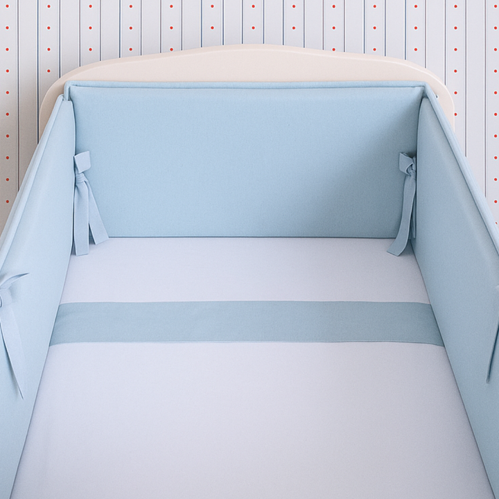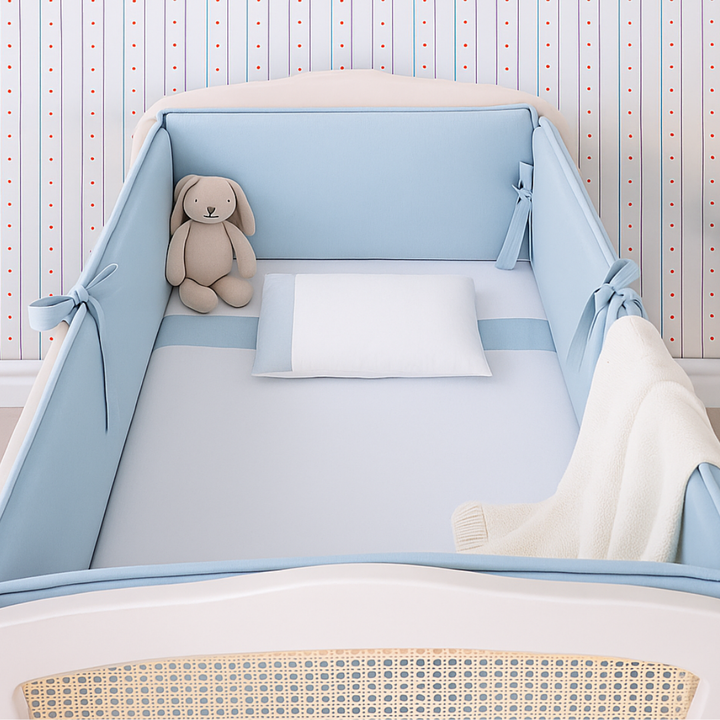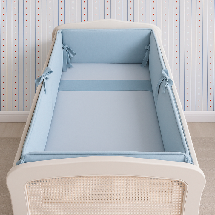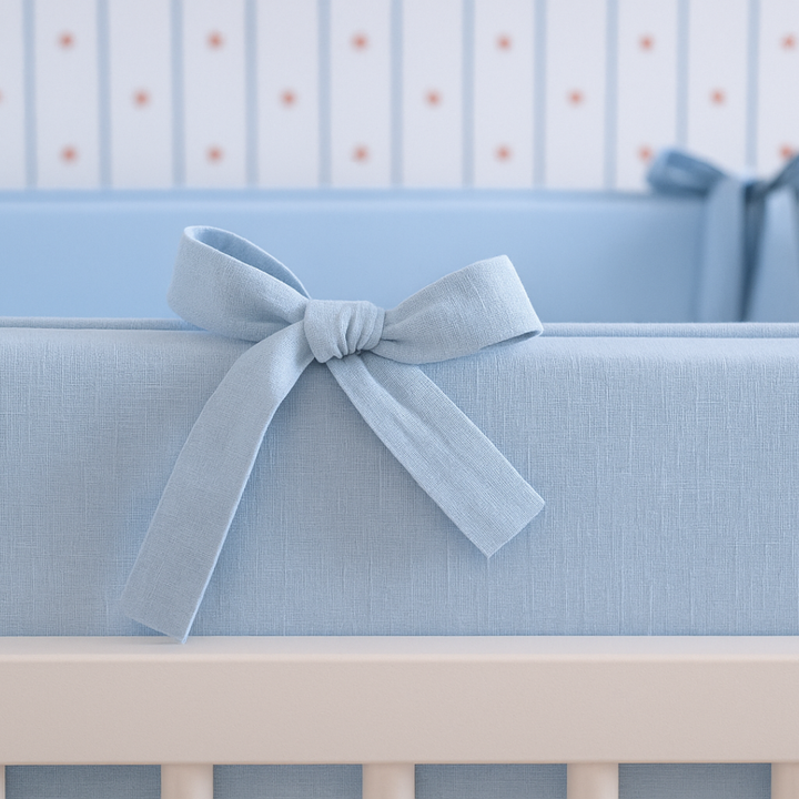 Kit Protetor de Berço em Linho Azul 100% Algodão | 4 Peças