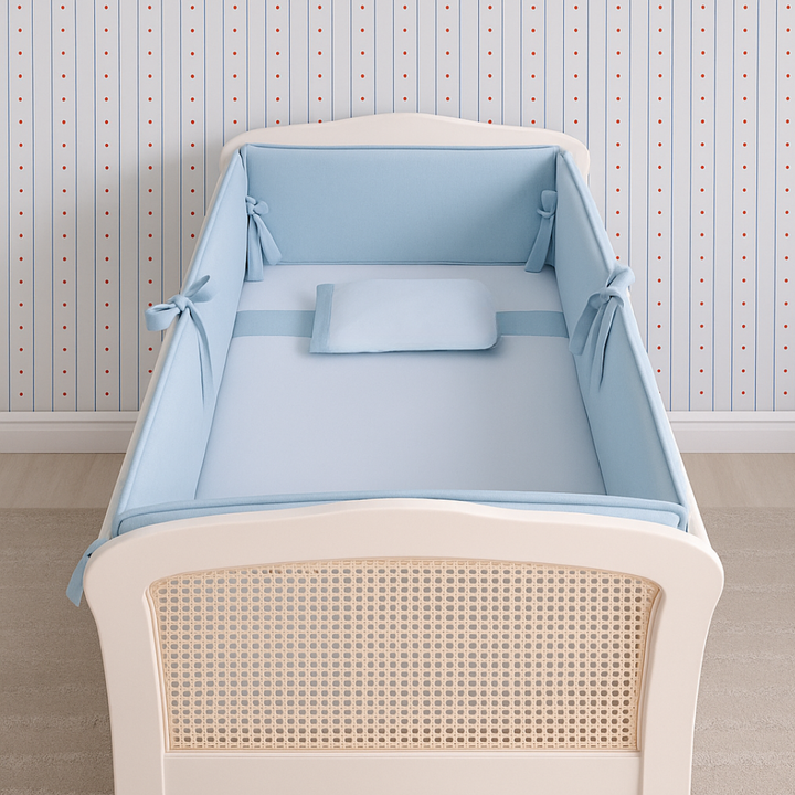 Protetor de Berço 04 peças Linho Azul Algodão Poesia