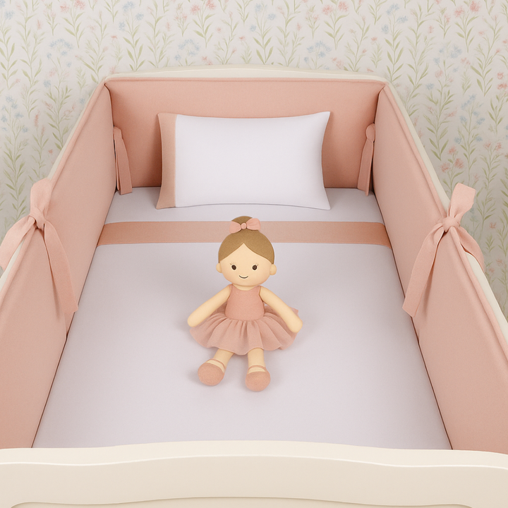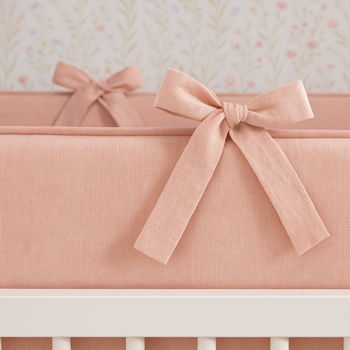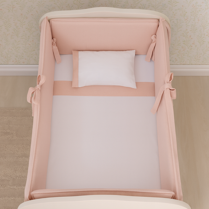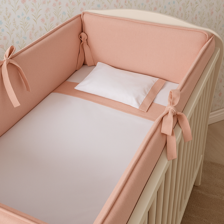Kit Protetor de Berço em Linho Rosê 100% Algodão | 4 Peças
