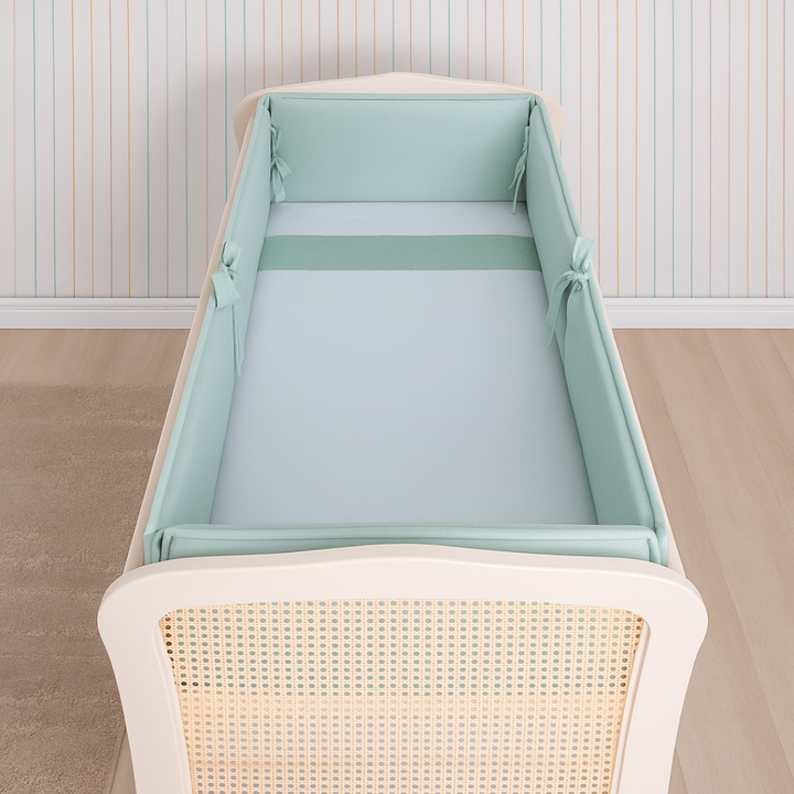 Protetor de Berço 04 peças Linho Verde Algodão Poesia