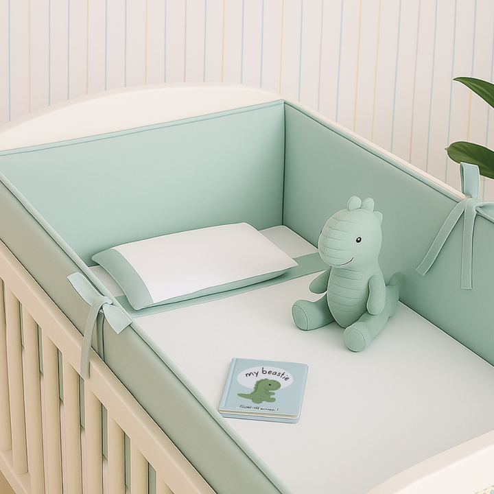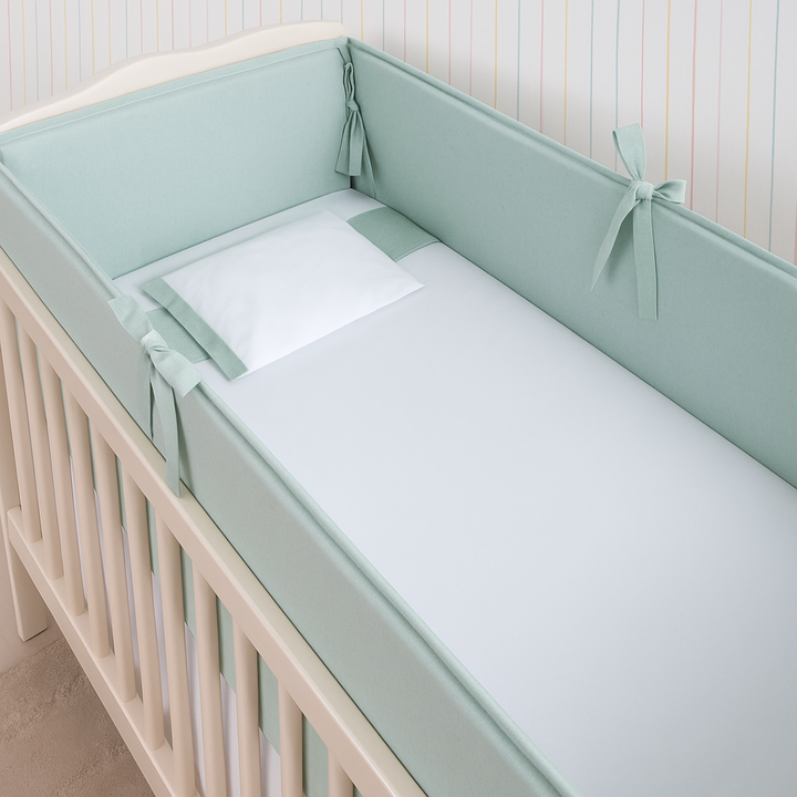 Kit Protetor de Berço em Linho Verde 100% Algodão | 4 Peças