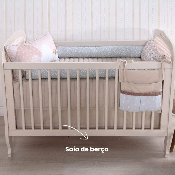 Com movimentos suaves e silenciosos como o vento que sopra nas manhãs calmas, a saia de berço foi pensada para vestir o cantinho do bebê com conforto e simplicidade encantadora.