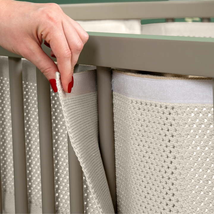 A Tela Respirável Flow 4 Lados na cor Almond Milk foi cuidadosamente desenvolvida para proporcionar ao seu bebê noites de sono mais seguras, confortáveis e tranquilas. Confeccionada em tricô 100% algodão sustentável, sua textura macia e estrutura respirável evita que o bebê prenda braços ou pernas entre as grades do berço, sem comprometer a circulação de ar.