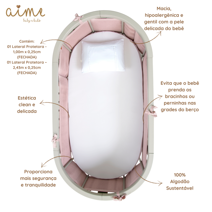 Tela Respirável Flow para Grade de Berço - 4 Lados Rosa Velho