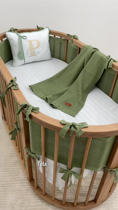 A Tela Respirável Flow Verde Cactus foi desenvolvida para garantir segurança, conforto e leveza nos momentos de descanso do seu bebê. Confeccionada em tricô 100% algodão sustentável, ela atua como uma barreira suave e respirável, evitando que o bebê prenda os bracinhos ou as perninhas nas grades do berço — promovendo um sono mais protegido e tranquilo.