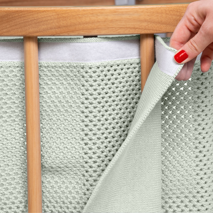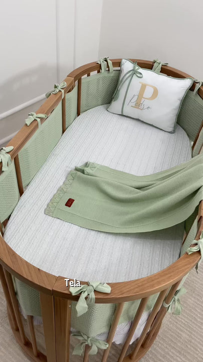 A Tela Respirável Flow Verde Tender Greens foi desenvolvida para oferecer ao bebê noites mais seguras, confortáveis e tranquilas. Confeccionada em tricô 100% algodão sustentável , esta tela evita que o bebê prenda os bracinhos ou perninhas entre as grades do berço, sem bloquear a circulação do ar — promovendo um ambiente confortável, acolhedor e com toque macio.