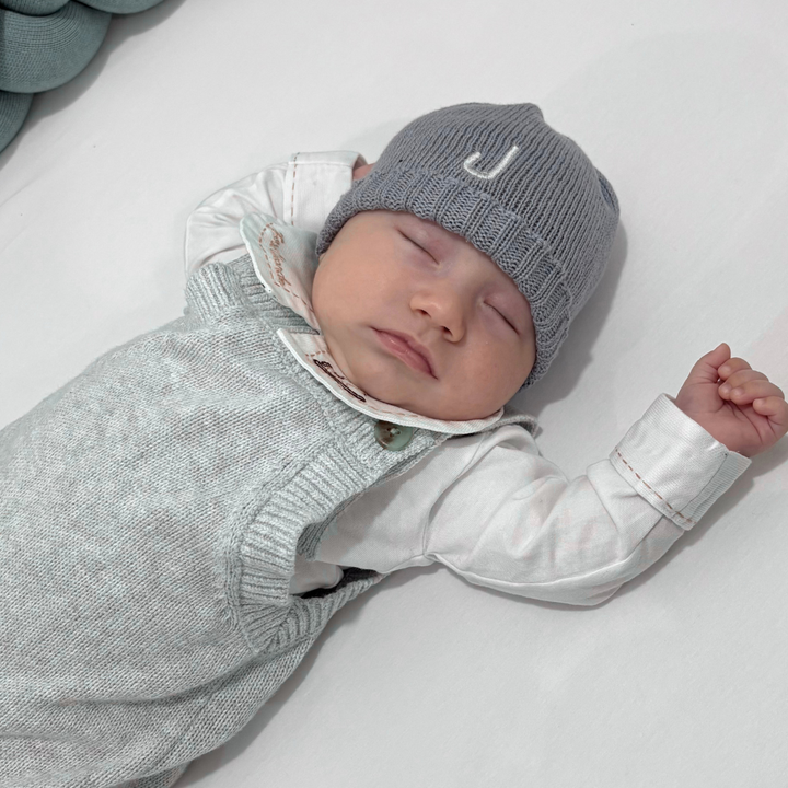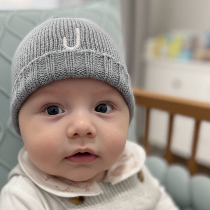 Touca Personalizável para Bebê com Inicial Bordada em Tricot Sustentável 100% Algodão
