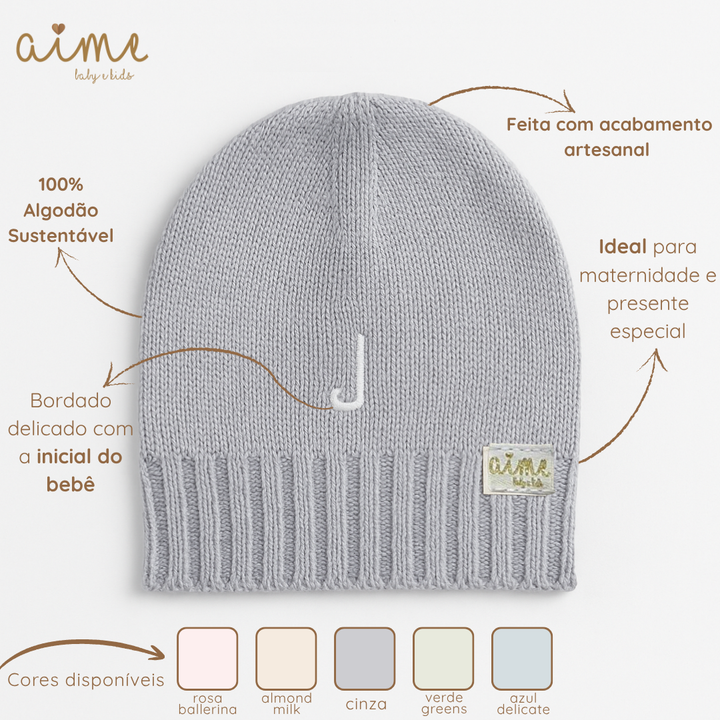 A Touca Personalizável com Inicial Bordada Aime Baby Kids une afeto, conforto e exclusividade .
