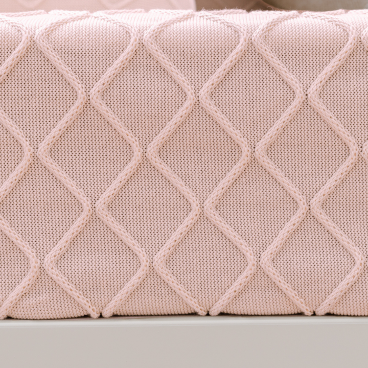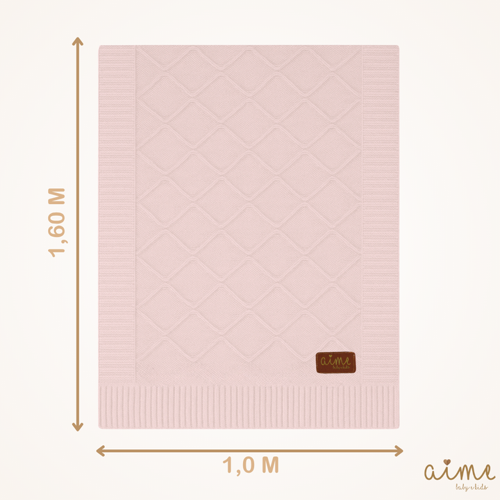 Cobertor de Bebê e Trança para Berço Tricô Rosa Ballerina 100% Algodão – Combo 2 Peças