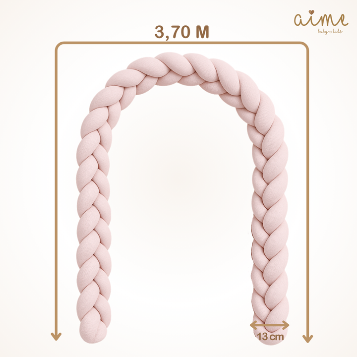 A trança envolve o berço de forma segura e delicada, evitando o contato direto com as grades e adicionando um toque de ternura à decoração.