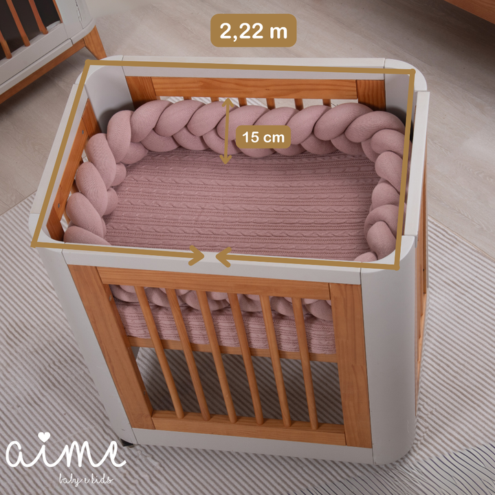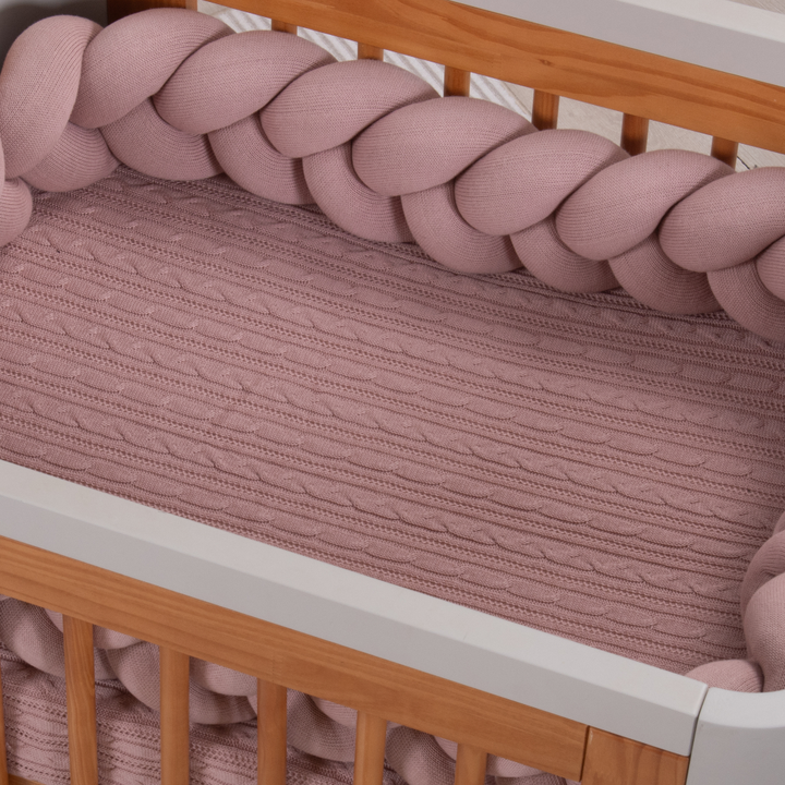 Trança Protetora De Mini Berço Tricot Algodão Rosa Velho (2,22 m x 14 cm)