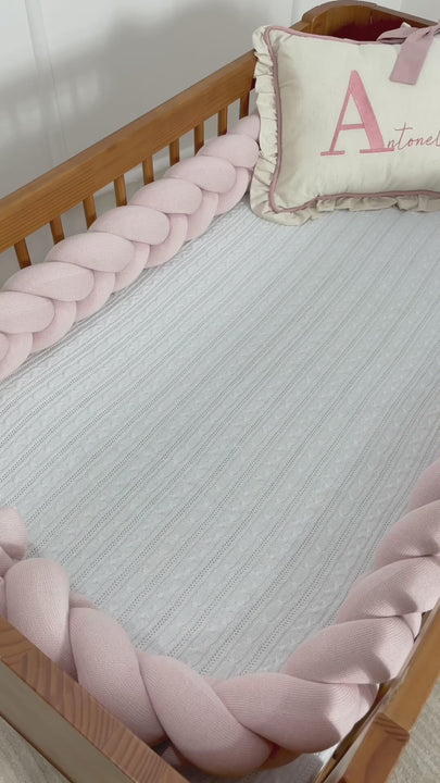 Trança Protetora Para Berço e Cama Tricot Algodão Rosa Ballerina