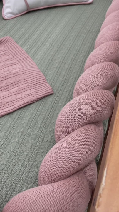 Trança Protetora Para Berço e Cama Tricot Algodão Rosa Velho